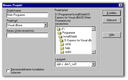 Bei der Version von InstallShield Express für Visual dBASE handelt es sich um eine spezielle Version von InstallShield Express, die einige Einschränkungen gegenüber der Vollversion besitzt, die uns aber nicht so stören.