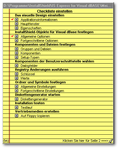 Für die Erstellung des Setups führt uns InstallShield Express anhand einer Checkliste durch die einzelnen Punkte.