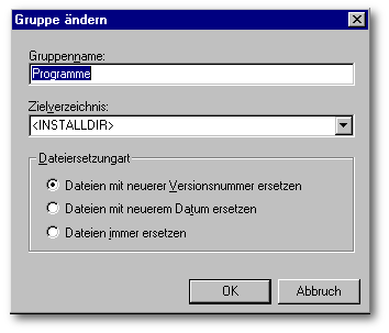 Die Gruppe Programme besitzt den Bezeichner <INSTALLDIR>. Das bedeutet, bei der Installation kann der Anwender selbst bestimmen auf welches Laufwerk und Verzeichnis er diese Daten installieren möchte.
