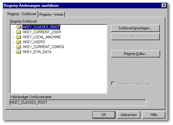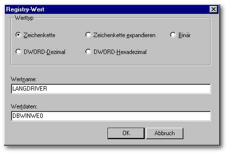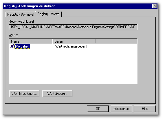Die benötigten Einstellungen für Tabellen-Level und Sprachtreiber werden dann mit entsprechenden Registry-Einträgen über InstallShield Express definiert. Siehe Kapitel 1.2.5 Registry-Änderungen ausführen.