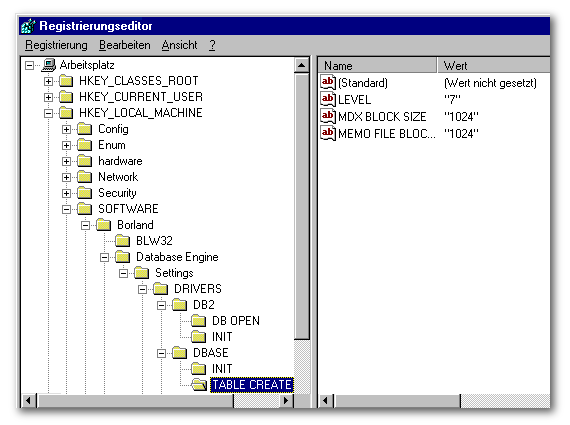 Alle Borland-Programmiersprachen und Software-Anwendungen, die mit diesen erstellt wurden, verwenden die BDE. In der BDE gibt es einige Einstellungen, die für eine dBASE-Applikation wichtig sind und dafür sorgen, daß die Anwendung ohne Fehler läuft.