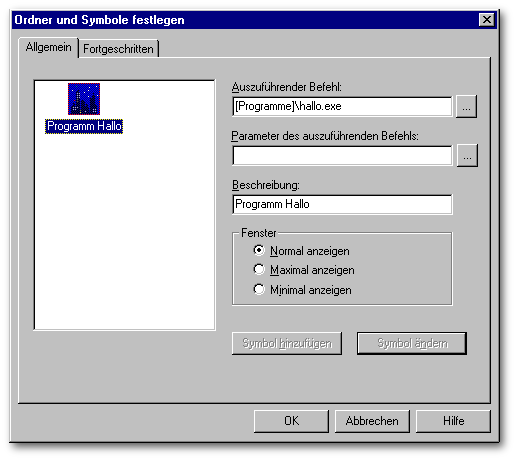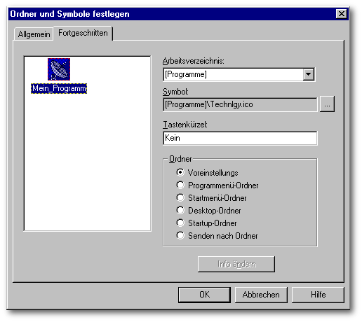 Eintrag in die Programmgruppe und als Verzeichnisnamen.