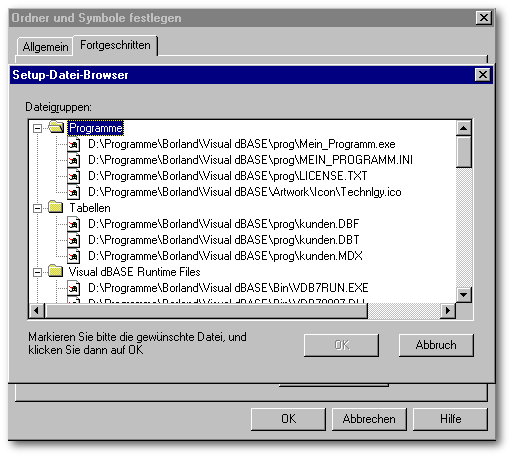 Das Installations-Set kann aus einer Komplett-Installation mit BDE, Visual dBASE Runtime, Applikations-EXE, Daten, Beispieldaten usw. bestehen oder aus Teilbereichen, um z.B. eine neue Version Ihrer Applikation zu installieren.