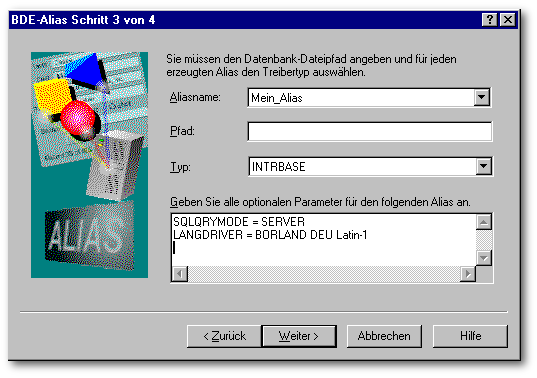 Der Zugriff auf einen SQL-Server erfolgt immer über einen Alias-Namen, der in der Konfigurationsdatei der BDE vorhanden sein muß.