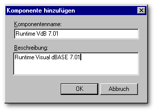 Als Komponentenname wird in diesem Fall Runtime VdB 7.01 eingetragen. Für jeden Komponentennamen kann eine entsprechende Beschreibung erstellt werden. Auch diese wird bei der Installationsauswahl angezeigt.