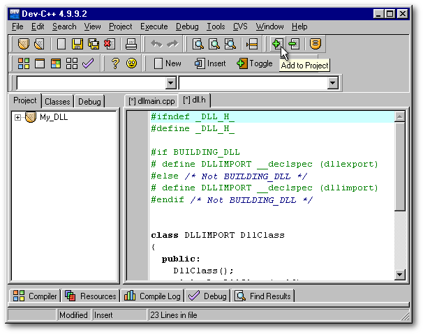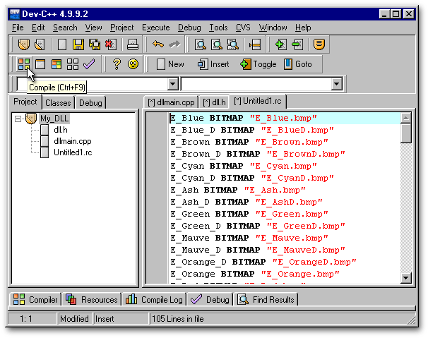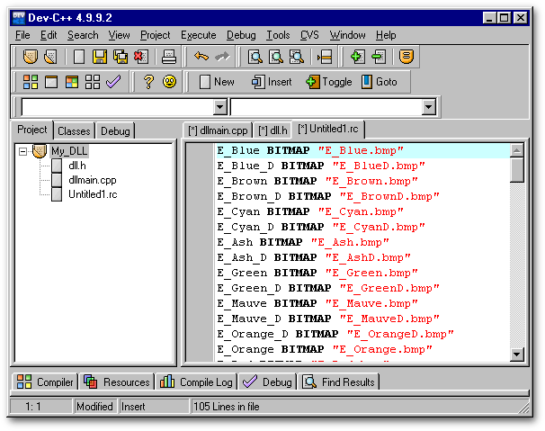 For the rest of the software industry, the choice was between having images files scattered in a folder or storing the images in a DLL. The choice was obvious. Consequently, DLLs are seen as a “professional” solution. For those who prefer that solution but can’t afford Borland’s C++ Builder or Microsoft’s Visual C++, Dev-C++ is an essential tool to be added to one’s toolbox. It gives developers who know nothing about the C++ language a chance to build resource DLLs with a few mouse clicks.