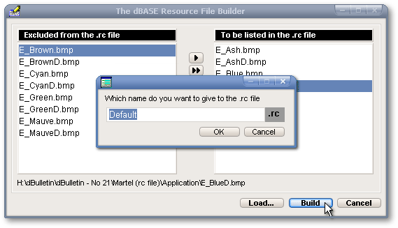 When the list is completed, click the Build pushbutton and write the name of your resource file in the dialog box. Finally, click the OK pushbutton.