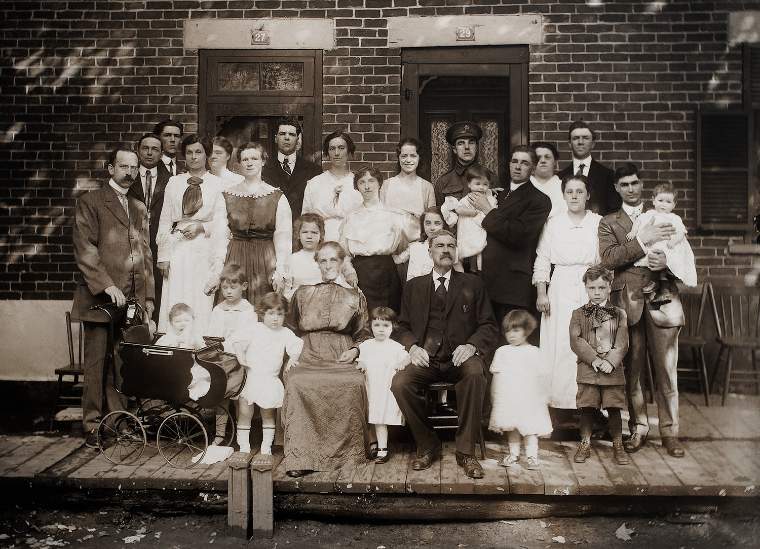 1 - Jean-Louis Martel (1850-1918), photographié moins d'un an avant sa mort, en présence de son épouse (2), de tous ses enfants vivants (4, 5, 7, 8, 9, 13, 14, 16, et 18).