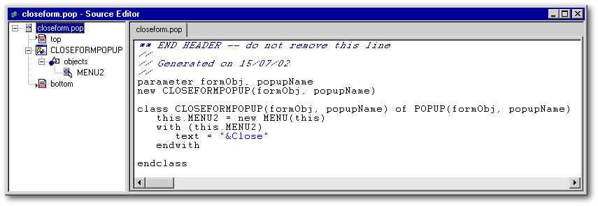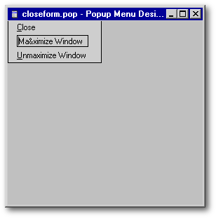 Now use File | Save As… to save the menu as closeform.pop:
