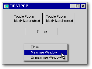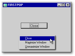 Incidentally, this Close button and its code have no connection whatsoever to the popup (well, other than identical functions). We’re just sticking it in there because closing forms is what Close buttons do; and you should always provide another means of performing each of the actions available on a popup menu.