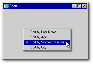 Well, actually, it can be one step simpler: we can eliminate Step 2 if we instantiate the popup menu into dBASE’s built-in form property called form.popupMenu instead of into a custom form property that we create for the purpose.