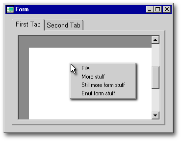 Remember the very first form described in this article, the one with the simple popup menu instantiated into the built-in property called form.popupMenu? What if you also want an object-specific popup in such a form? Or perhaps 2 or 3 object-specific popups?