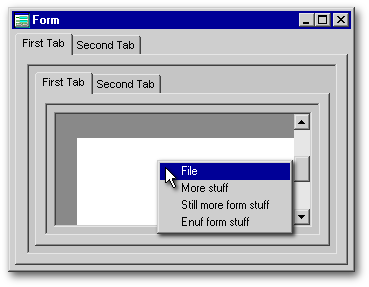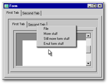 There are two problems. The first is an extension of an issue we have already looked at — the necessity of accounting for the separate coordinate systems of the form and the object that we are right-clicking in order to place the menu precisely where we wish. As an example, see the form below which has a grid within a Notebook: