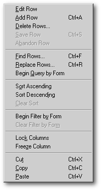 If you do not have a query on the form, but do have entryfields or other editable controls, most of the choices on the popup are grayed out, but the usual editing choices (Copy|Cut|Paste) are available as appropriate.